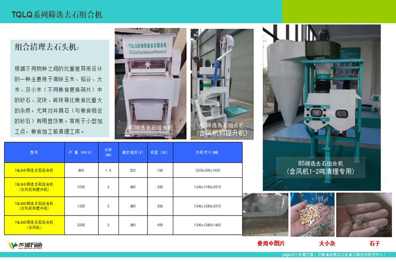 利来生产的TQLS系列组合清理去石机,该系列组合型清理去石机整合风机、振动筛、去石机为一体的粮食清理设备,常应用于粮食加工中清理去除大中小杂、石头以及轻杂。其中TQLS-45型清理去石机常应用1吨下粮食清理,而TQLS-85组合清理去石机,精工制作常应用于30吨左右粮食加工生产线的前段清理工序。